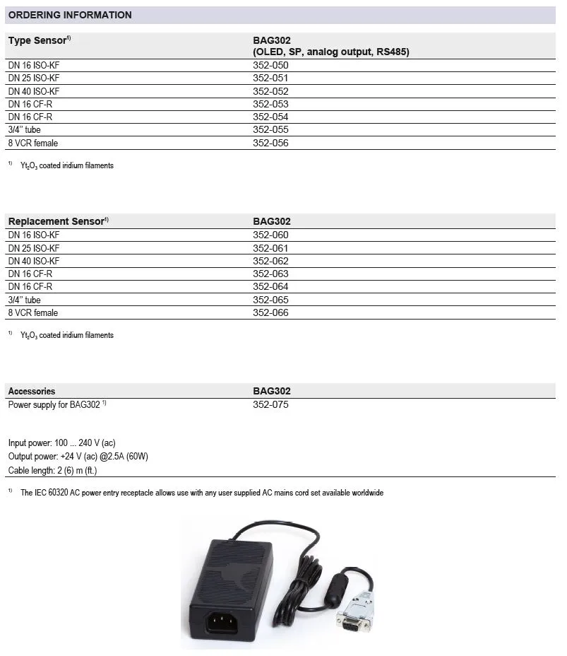 Đầu Đo Chân Không INFICON BAG302